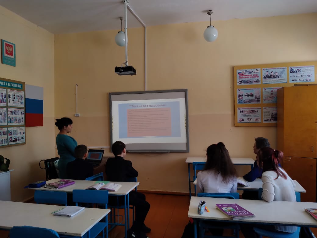 В 7 классе, под руководством Семёновой И.М. был проведен классный час на тему «Здоровый образ жизни». В ходе проведения классного часа учащимся были показаны презентации, ознакомились с режимом дня, закаливанием. Было рассказано о правильном питании и продуктах, помогающих формировать иммунитет.