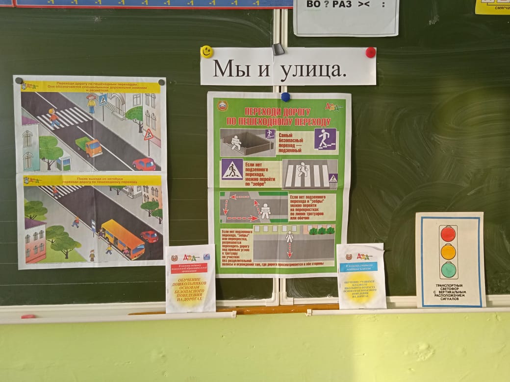 В начальных классах регулярно проводится "Минутка безопасности", классные часы о необходимости соблюдения правил дорожного движения , обращая внимания детей на погодныеусловия и безопасности на дорогах.