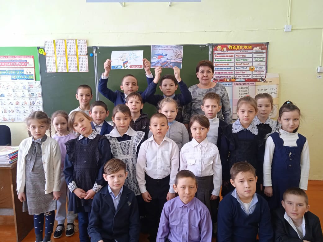 В целях гражданско- патриотического воспитания детей и в связи с исторической датой присоединения Крыма к России в начальных классах18.03. провели классный час" Крымская весна". Учащиеся получили сведения о географическом положении Крыма,о его историческо