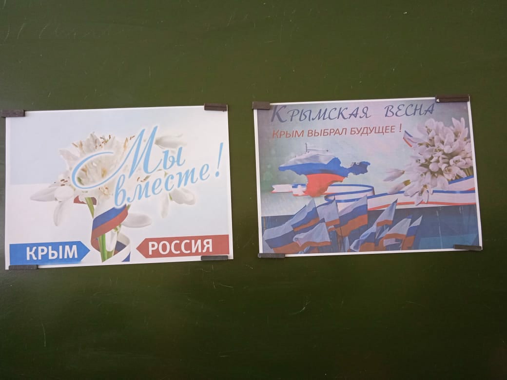 В целях гражданско- патриотического воспитания детей и в связи с исторической датой присоединения Крыма к России в начальных классах18.03. провели классный час" Крымская весна". Учащиеся получили сведения о географическом положении Крыма,о его историческом и культурном положении.