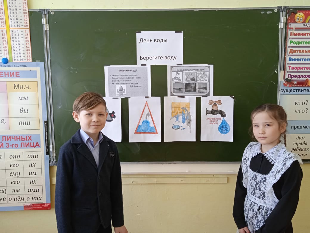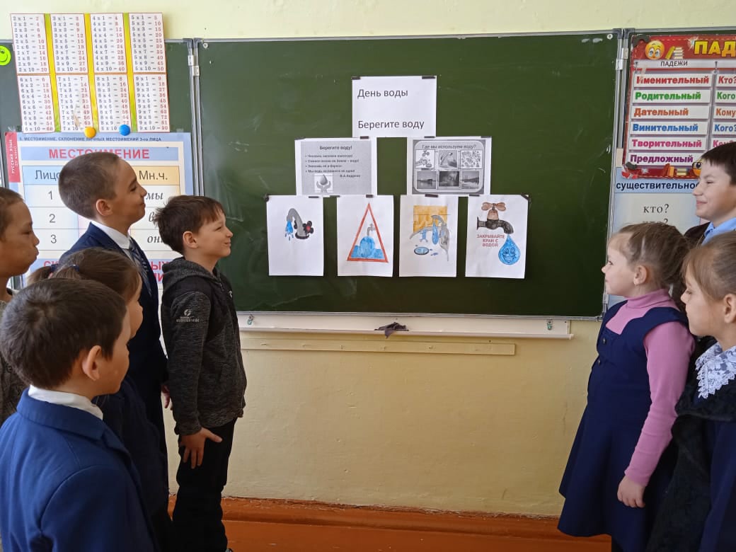 22 марта с 1995года объявлен Международным днем воды. И этот день отмечается не потому, что на Земле много воды, а потому что она всё чаще требует защиты. Учителя начальных классов Астафьева Е. С. И Герасимова Л. Н. провели внеклассное мероприятие "День воды".Был конкурс чтецов, конкурс рисунков " Берегите воду ".Дети узнали много полезного : о свойствах воды, о её пользе.